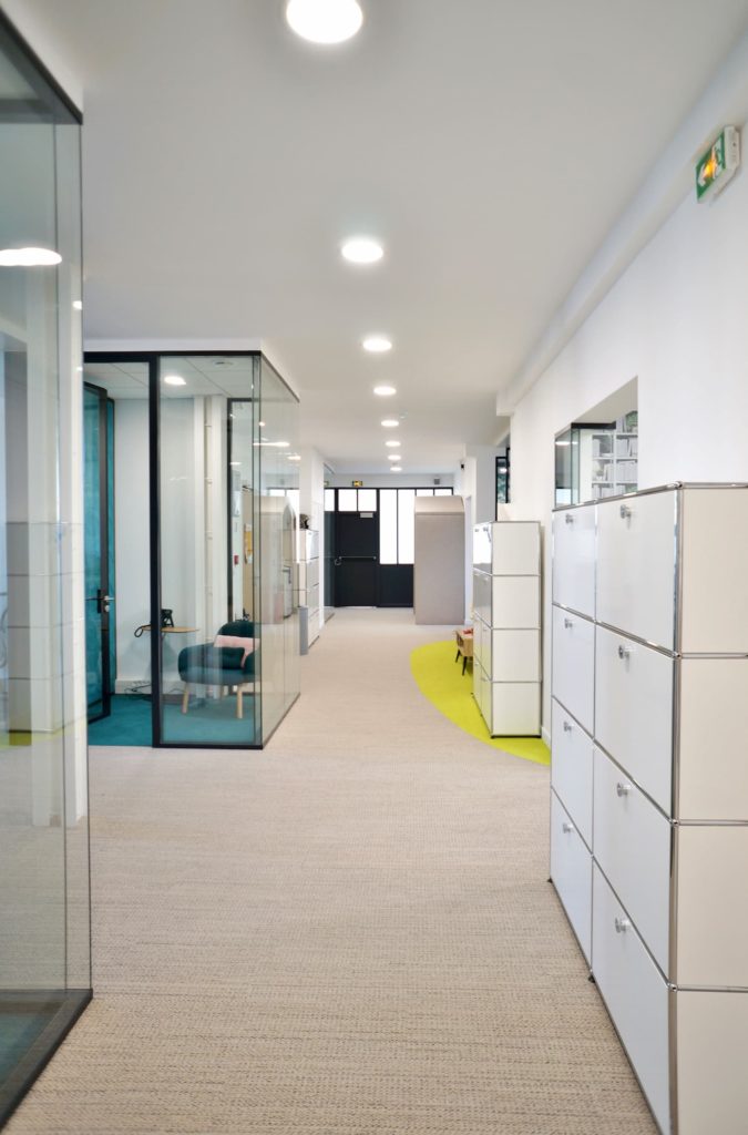 Adapter les lieux aux métiers. Ouvrir l’espace et favoriser les échanges entre les équipes. Moderniser l’environnement de travail et créer un cadre convivial, contemporain et fonctionnel.